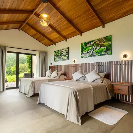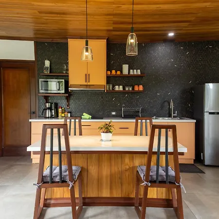 Boasting a location at a distance of 2.9 km from Arenal Natura Ecological Park, the 6-room Villas Jawara ! Un Volcan En Su Jardin ! provides a patio with city views. Featuring a Jacuzzi, the property is nestled about 10 minutes' drive from Termales Los Laureles Hot Spring Hotel.